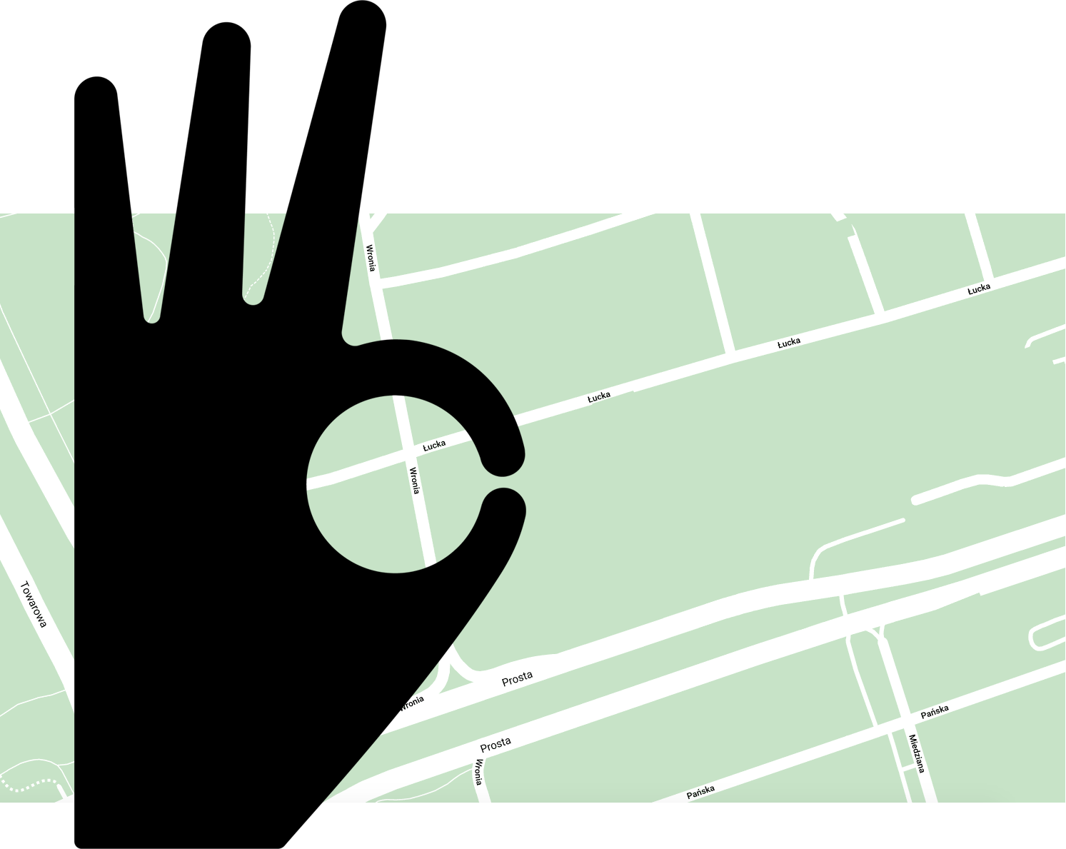 Mieścimy się na Łuckiej 18. To ścisłe centrum Warszawy, po którym możesz wygodnie poruszać się pieszo. Jeśli jednak planujesz dalekie podróże - nic prostszego! W pobliżu znajduje się stacja metra: Rondo Daszyńskiego. Dojazd do stacji metro centrum zajmuje ok. 3 min. Świetne połączenie tramwajowe i autobusowe z pozostałą częścią miasta. Chcesz przyjechać do nas samochodem? Pod budynkiem znajduje się miejsce parkingowe!
